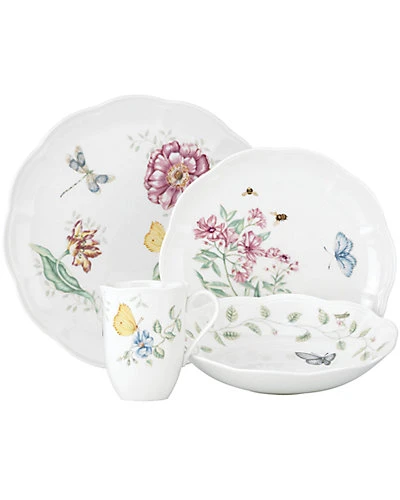- Lively butterflies, dragonflies, and bumblebees buzz about vibrant flowers on the Butterfly Meadow 4-piece Place Setting. This trademark Lenox design features elegant scalloped edges on durable white ceramic porcelain. This mix-and-match classic is crafted for outstanding freezer-to-oven-to-table performance, and is microwave and dishwasher-safe.
