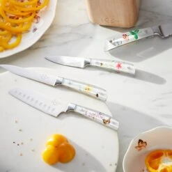 Because preparing a meal requires all the right knife work, the Butterfly Meadow 6-piece Block Set includes a variety of all your kitchen prep essentials. Inspired by the beloved Butterfly Meadow collection, a nature motif with butterflies, bees, and blossoming flowers dances across the handles of each chef, bread, santoku, utility, and paring knife. Keep them at their sharpest and safest in the set’s sturdy and charming acacia wood block.