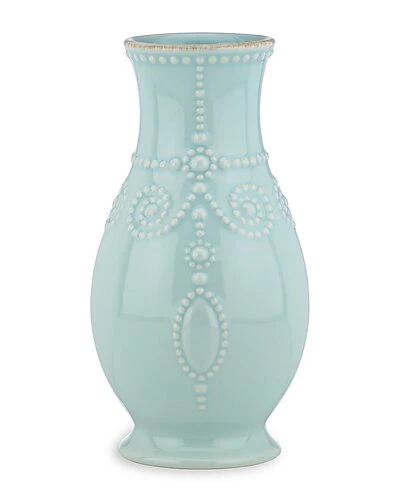 - The French Perle Ice Blue 8inFluted Vase is ideal for displaying a single trimmed flower. Standing at a handsome 8in height, this powder blue ceramic vase is assertive yet unimposing. The ideal balance for any household fixture.