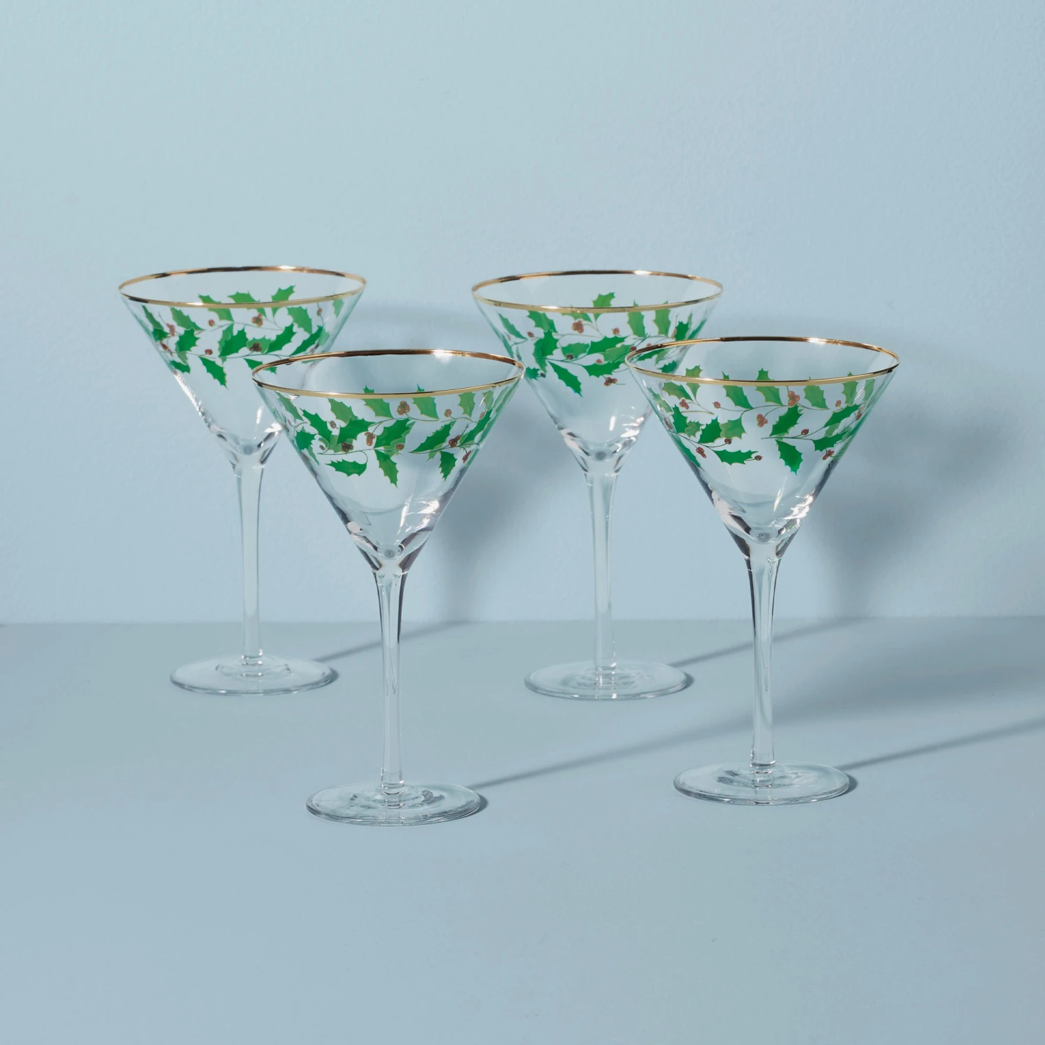 Cheers to Christmas spirits! Celebrate the holiday season with this set of four stunning martini glasses featuring a decal of our iconic Holiday holly and berry pattern. It’s the perfect gift for the host in the family!
