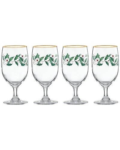 - Design details: enjoy some holiday libations with the 4-piece iced beverage glass set. A festive motif of holly leaves decorate the sides of these 24-karat gold accented glasses. This set is ideal for serving a cold beer or other chilled beverages.