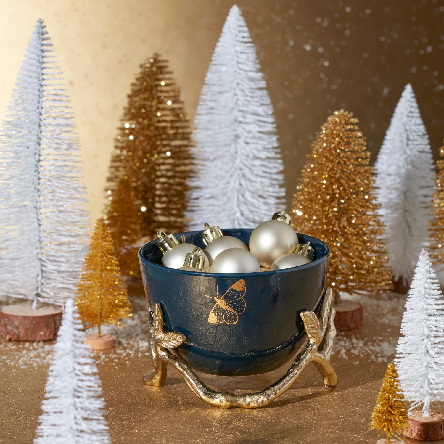 Add a unique accent to your table with this floral bowl from our Sprig & Vine collection. Sprig & Vine combines the beauty of vintage textiles with the bright botanicals of a lush English garden. This bowl sits in gleaming branches, a unique touch that can’t be missed.