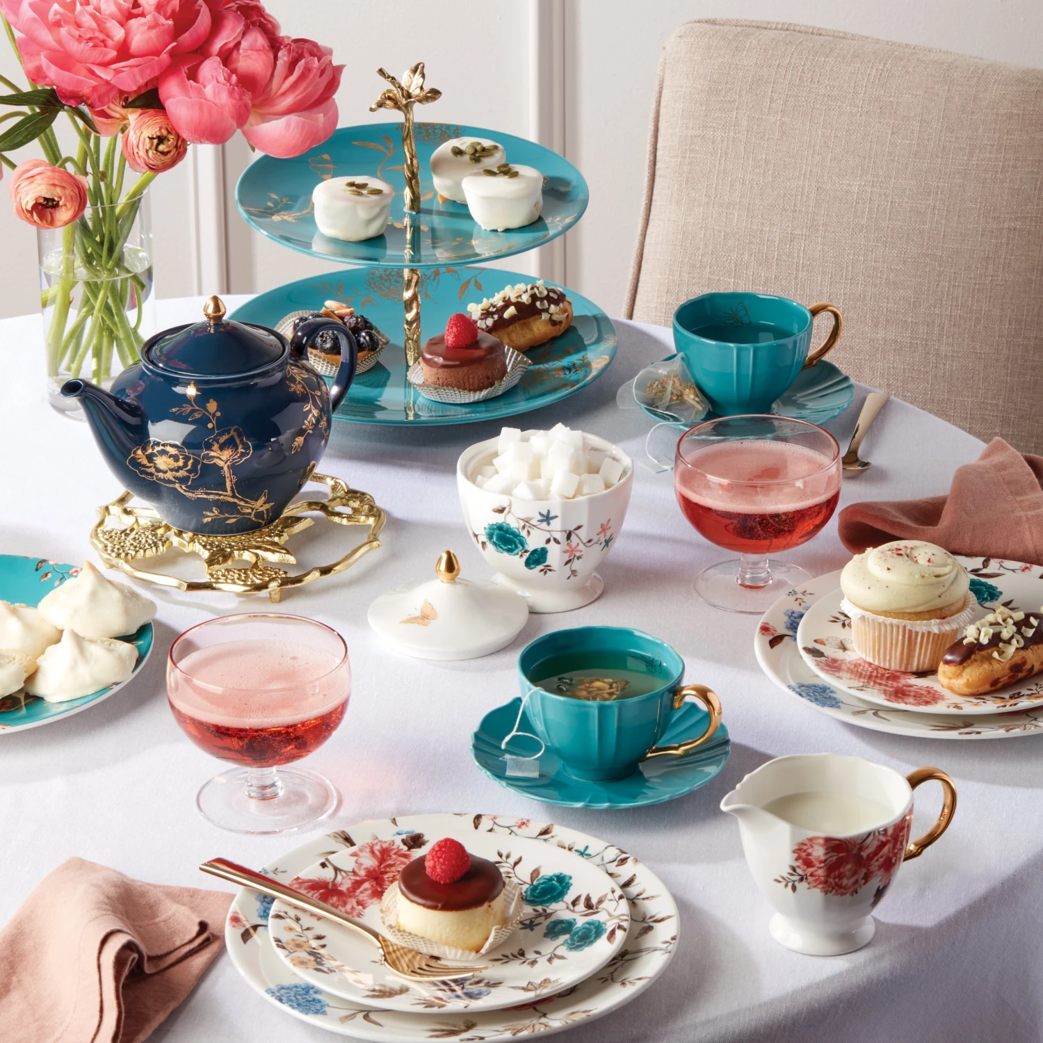 The Sprig & Vine teacup and saucer is the perfect way to enjoy your morning tea or coffee. This collection brings the beauty and bright colors of a lush English garden to your home.