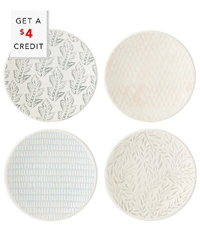 - Enjoy appetizers or sides with the Textured Neutrals tidbit plate set. Perfect for year-round gatherings, the organic patterns and subdued hues bring a natural style to your table.