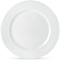 The Tin Can Alley Four-Degree Dinner Plate adopts the tin can’s emblematic corrugated rings on durable white porcelain for a simple, aesthetic design. This dishwasher and microwave-safe item suits any occasion and complements a variety of dinnerware styles.