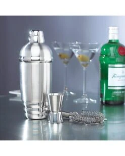 - Ideal for crafting all kinds of delicious cocktails, the Tuscany Metal Shaker and Strainer Set is crafted of durable 18/10 stainless steel. This set is a necessity for any barware collection.