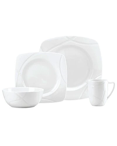- Distinct and intricate, the Vibe Square 4-piece Place Setting features a subtle and flawless motif of swirling and intersecting ribbon etchings. This durable ceramic porcelain dinnerware set is microwave- and dishwasher-safe, for added convenience.